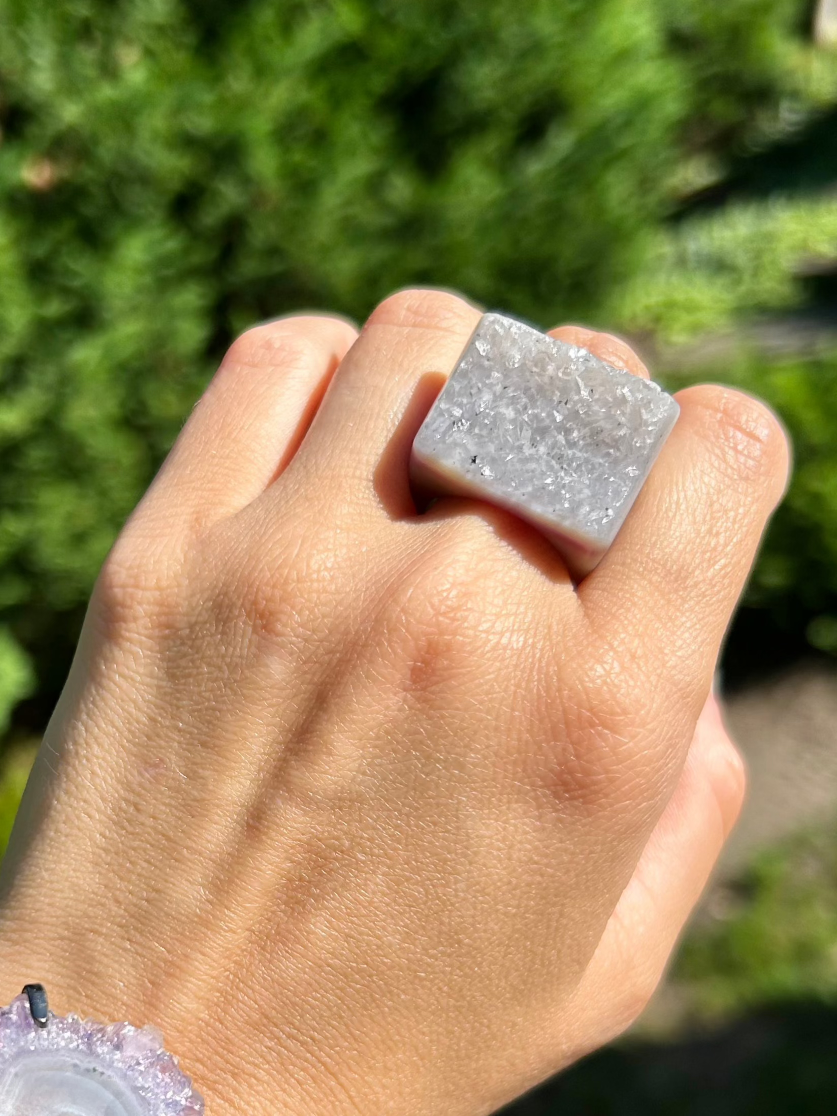 • Unique Design: Chunky purple agate with a sparkling druzy top.