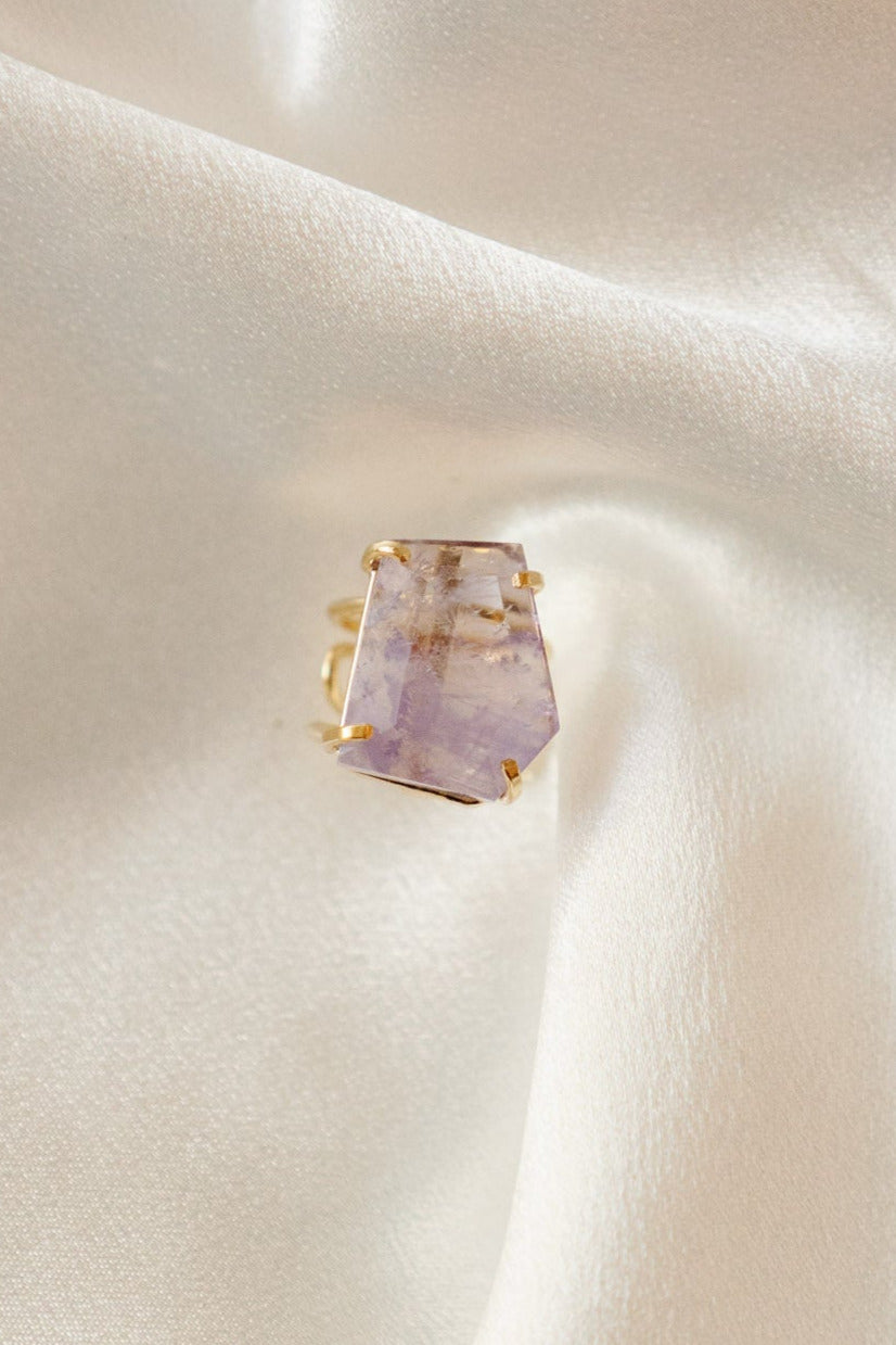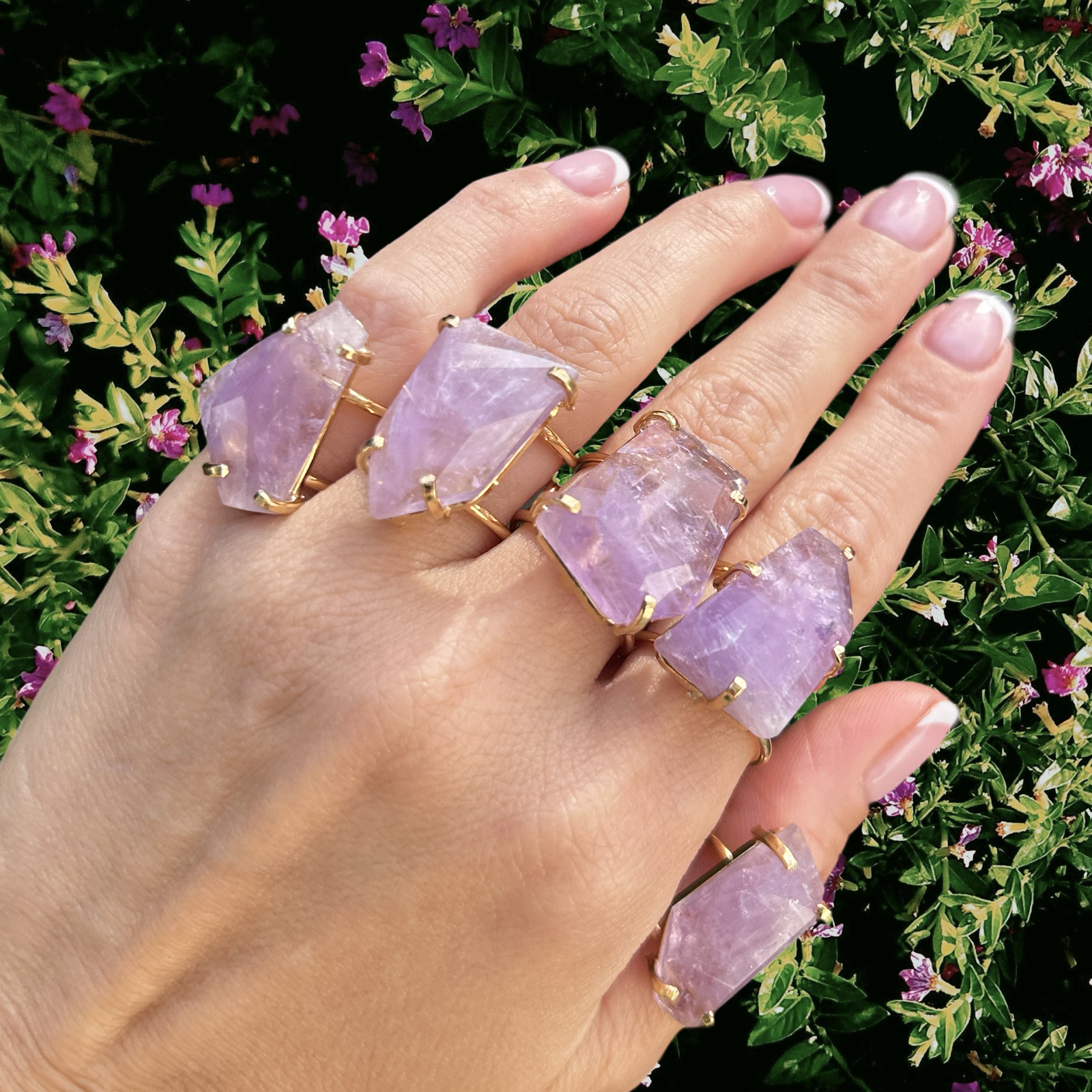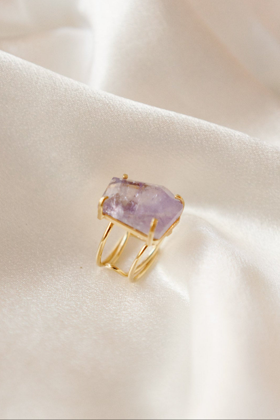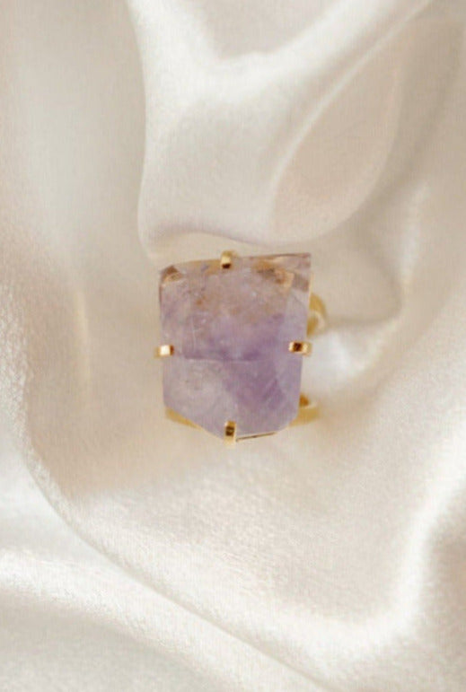 Amethyst Faceted Ring — 18K Gold Plated, Genuine Natural Gemstone Statement Jewelry