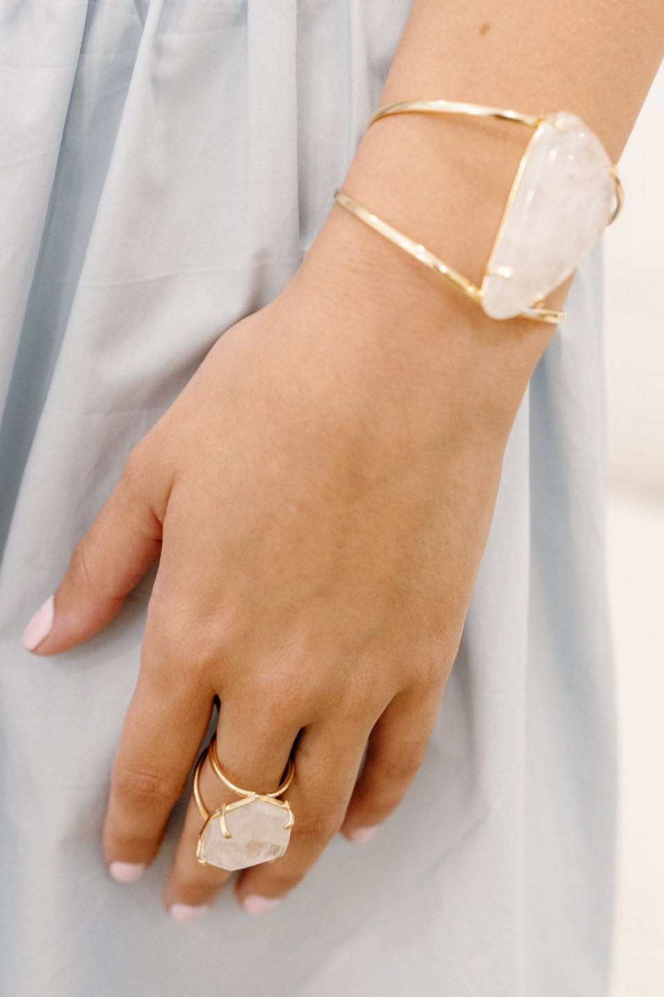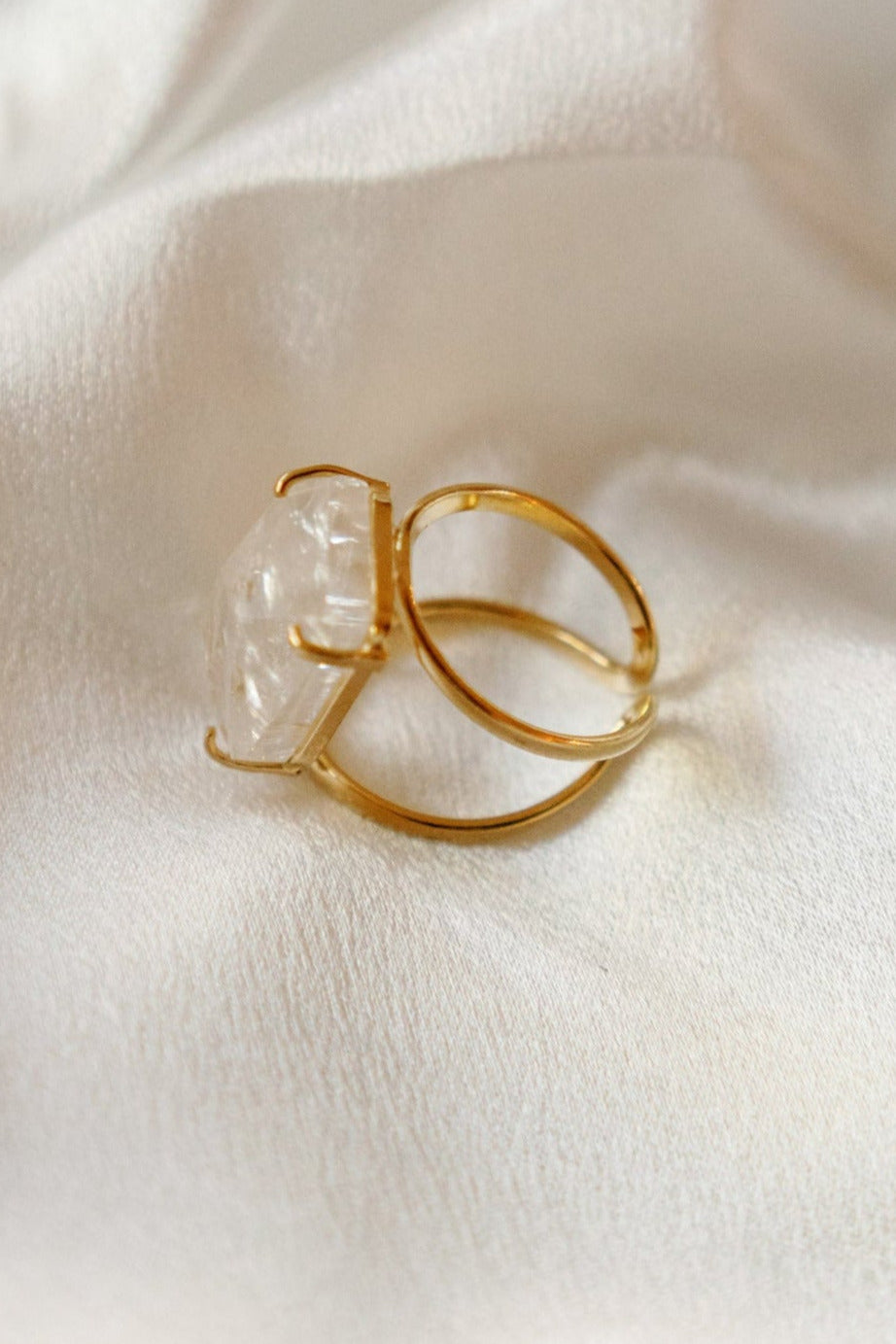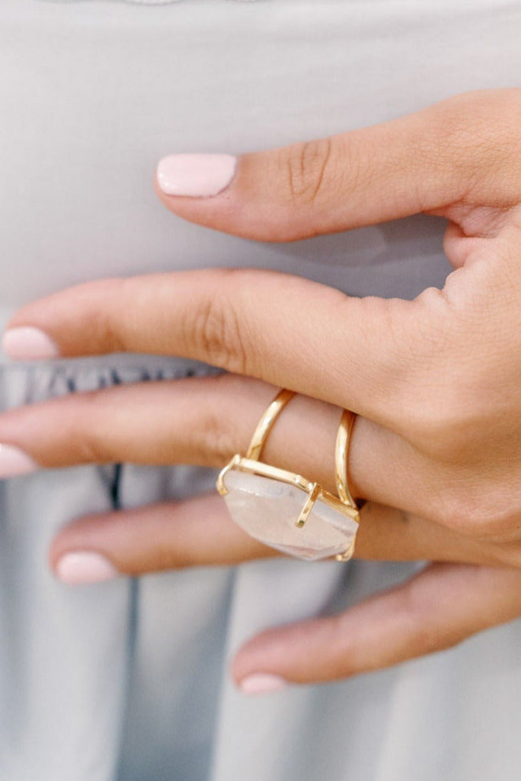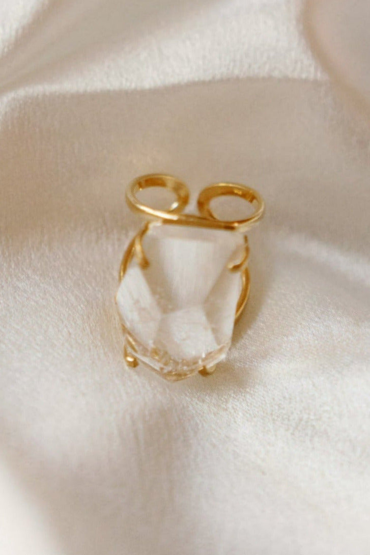 Clear Quartz Statement Ring — 18K Gold Plated, Genuine Natural Gemstone Adjustable Jewelry