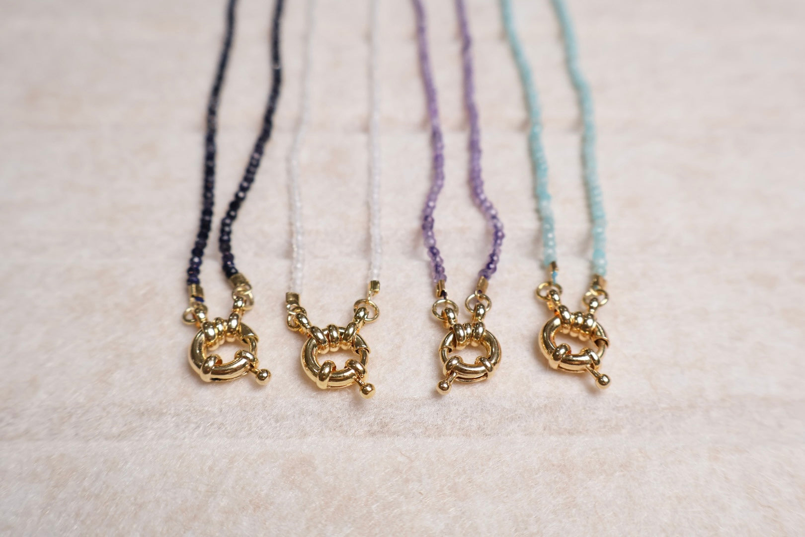 The Crystal Bead Choker is a timeless foundation piece designed for modern layering. Handcrafted with delicate natural gemstone beads and finished with an elegant 18K gold-plated latch, this refined choker can be worn alone for subtle sophistication, layered with other necklaces, or paired with your favorite AquaBrasil pendants.
