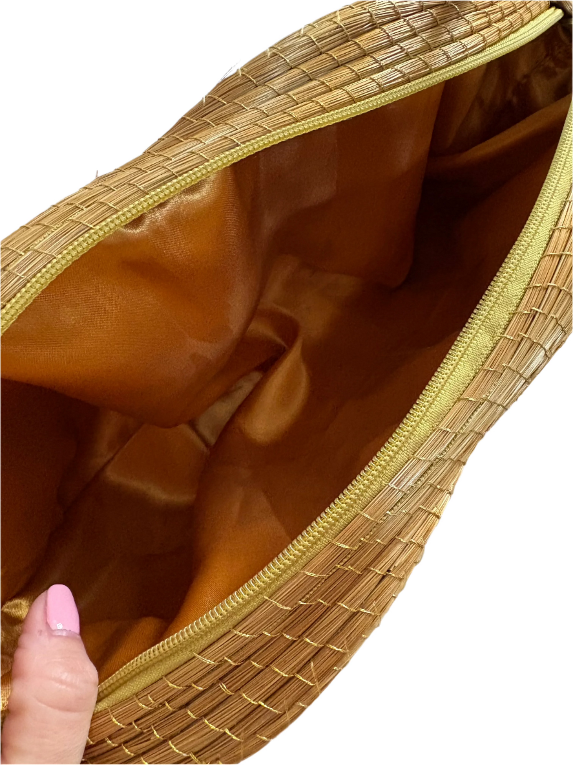 The interior of the bag is fully lined with a luxuriously soft, silk-like fabric that protects your belongings while adding an elegant touch. Every detail—from the weaving of the golden grass to the delicate hand-stitched seams—is crafted with care, precision, and a deep respect for nature.