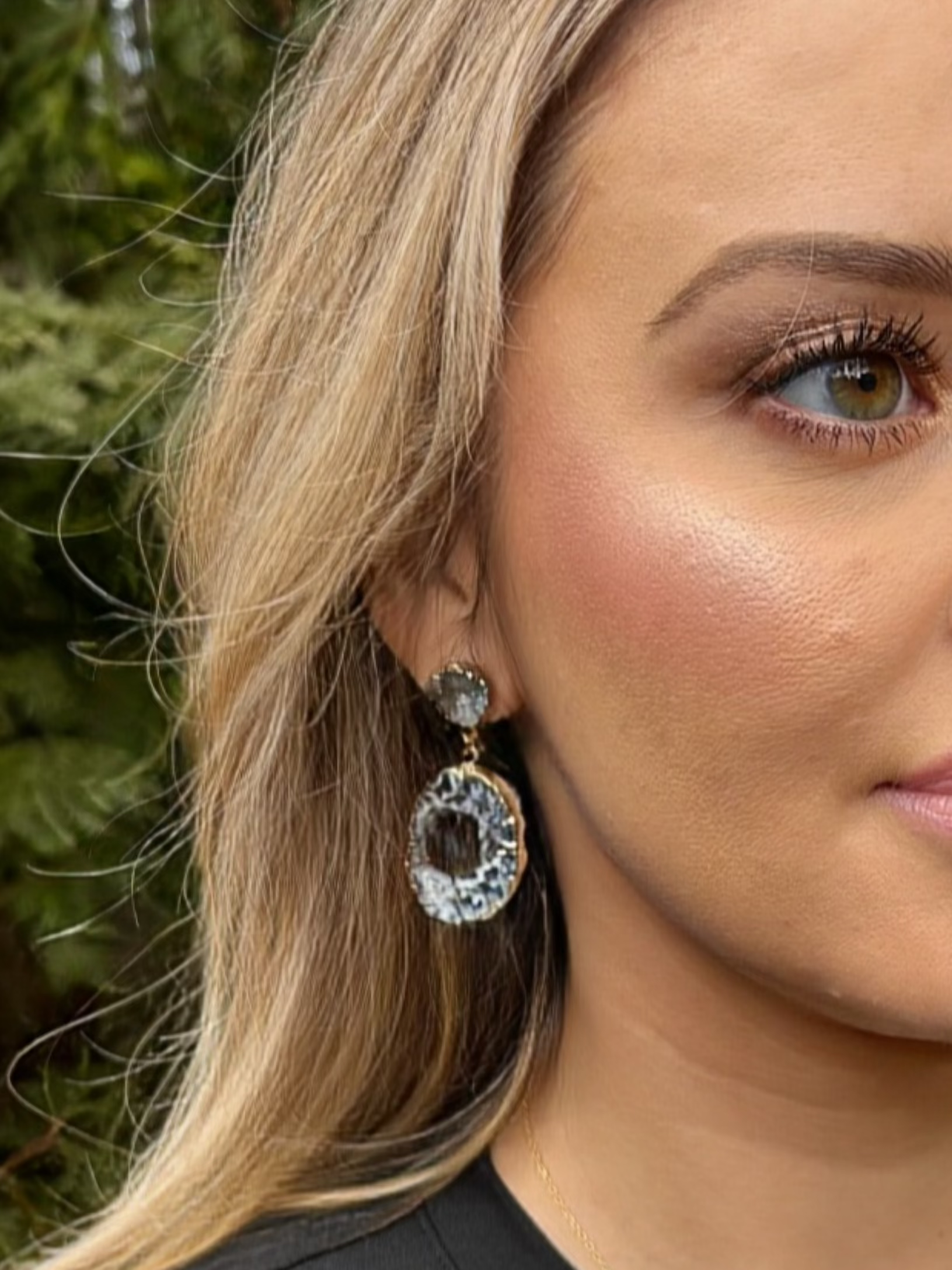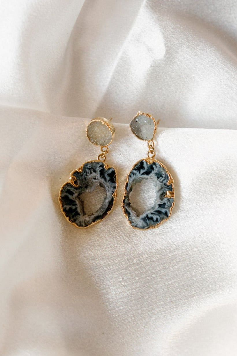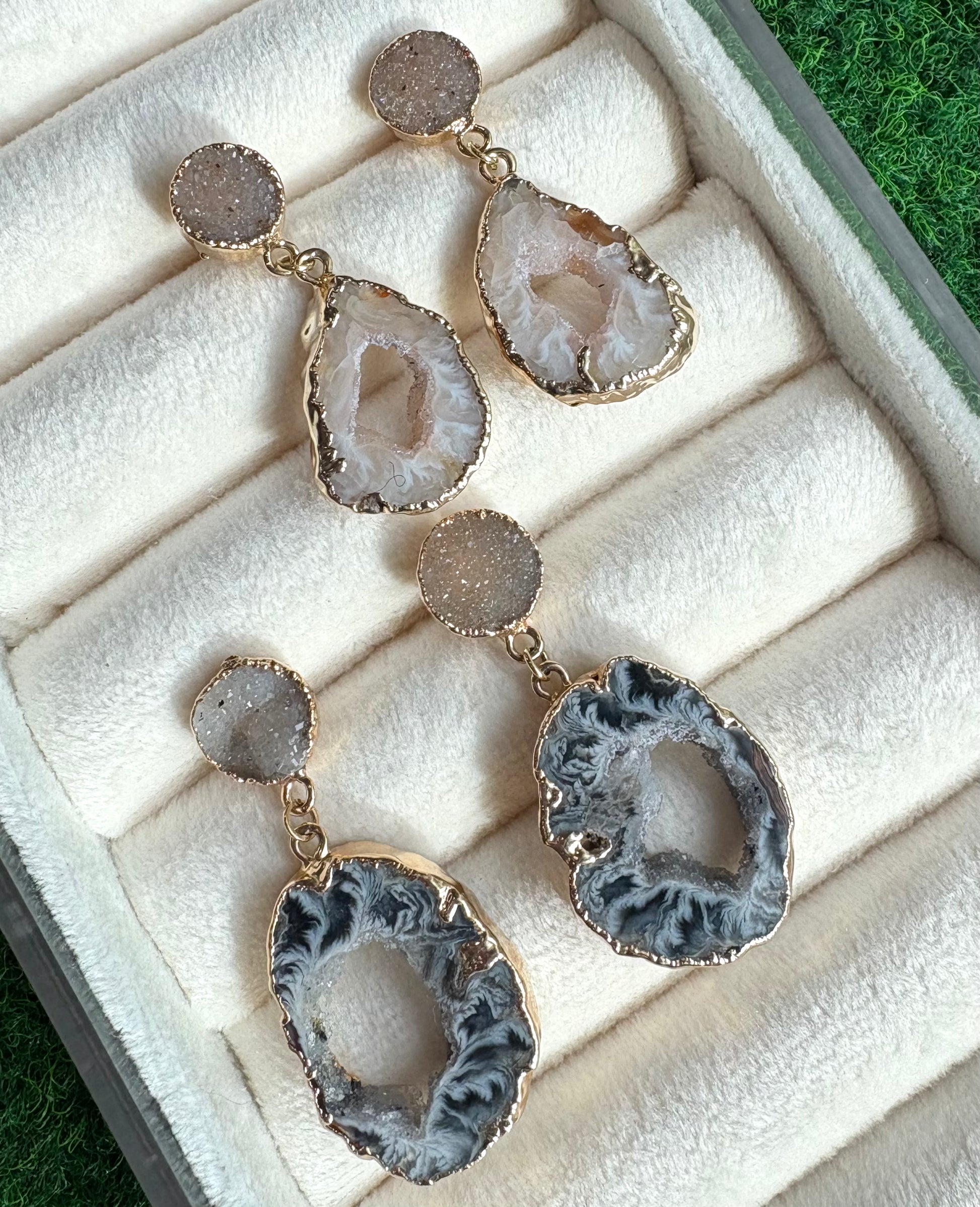 Not only are these earrings a beautiful accessory, but they are also hypoallergenic, making them perfect for sensitive ears. Available in two exquisite geode shades – a darker geode for a more dramatic look and a lighter geode for a soft, ethereal vibe. Whether you’re dressing up for a night out or adding a bit of glamour to your everyday look, these earrings are the perfect choice for any occasion.