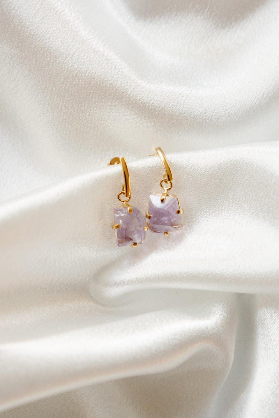 These versatile earrings come in a variety of gemstone options to suit your unique style. Choose Clear Quartz for a fresh, clean look, Rose Quartz for a soft, romantic vibe, or Amethyst for a deep, calming elegance. For a coordinated and complete set, we also offer matching pendants and bracelets to complement these stunning drop earrings.