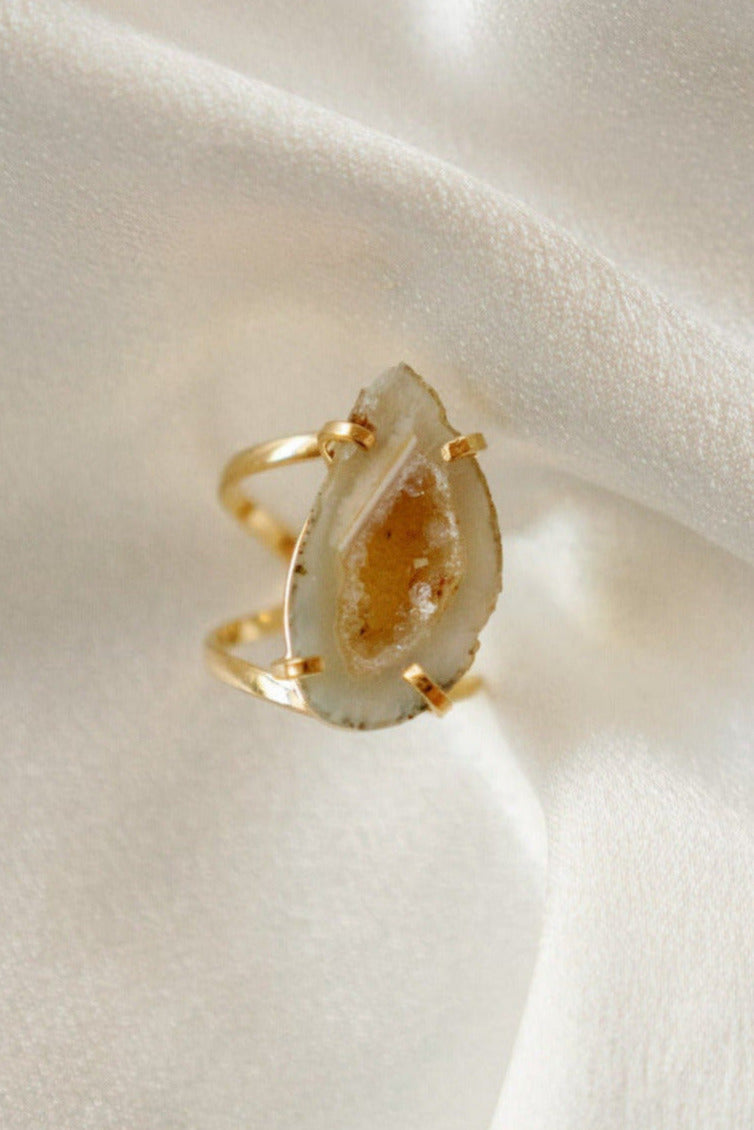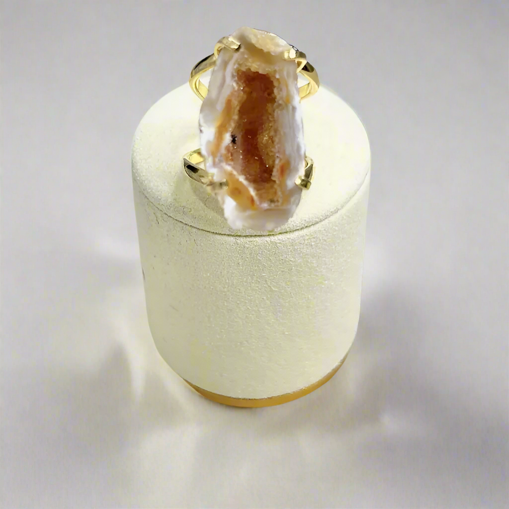 18K Gold Electroplated Full Geode Ring – Handmade in Brazil