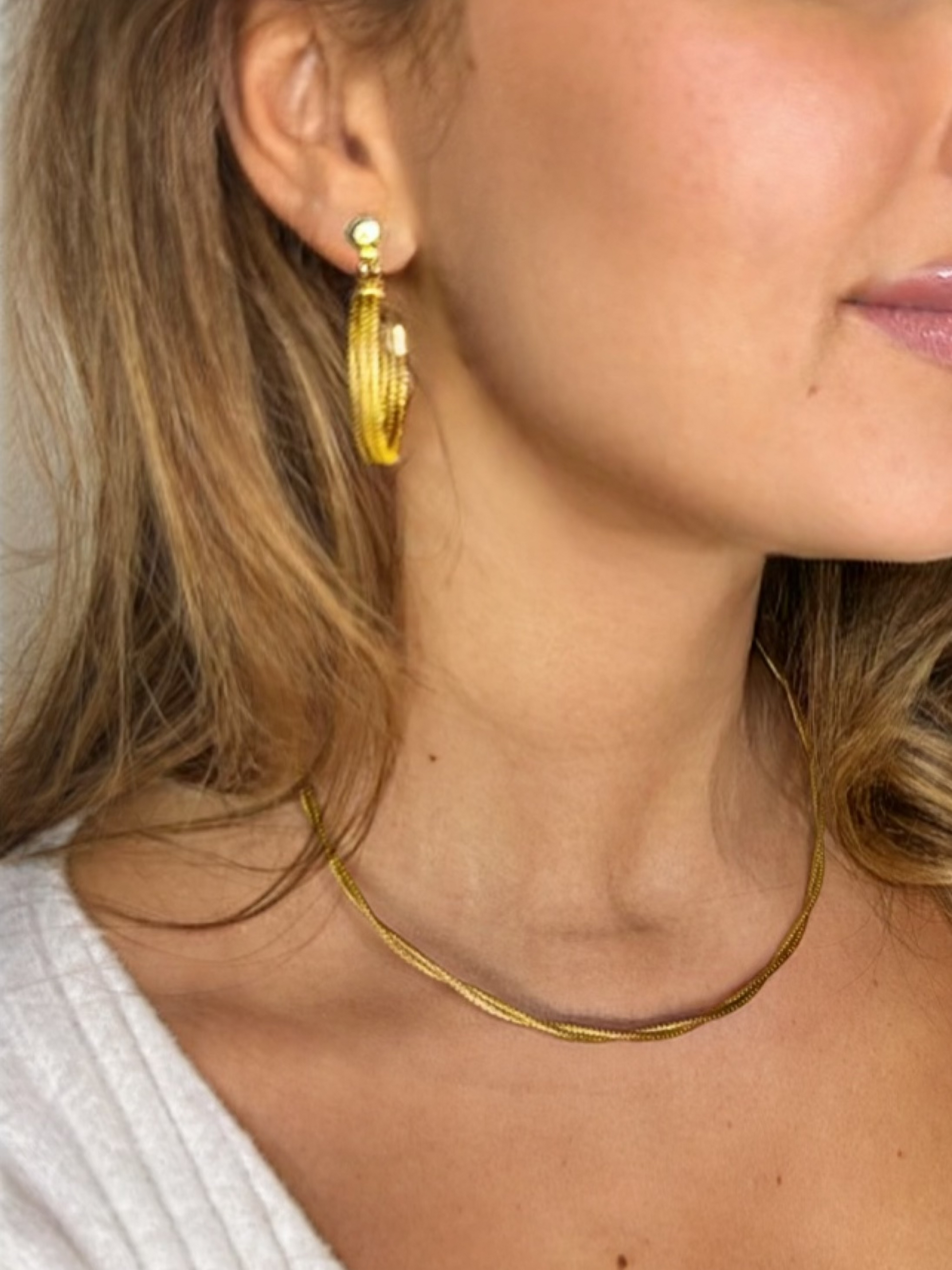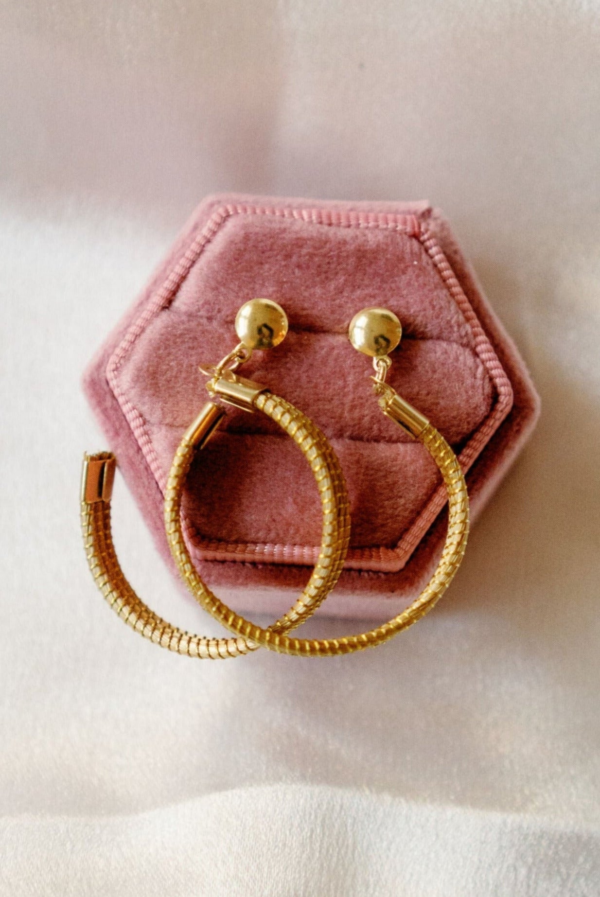 These lightweight, medium-sized hoops are the perfect blend of timeless style and eco-conscious design, finished with 18K gold-dipped, hypoallergenic brass for lasting shine and comfort.