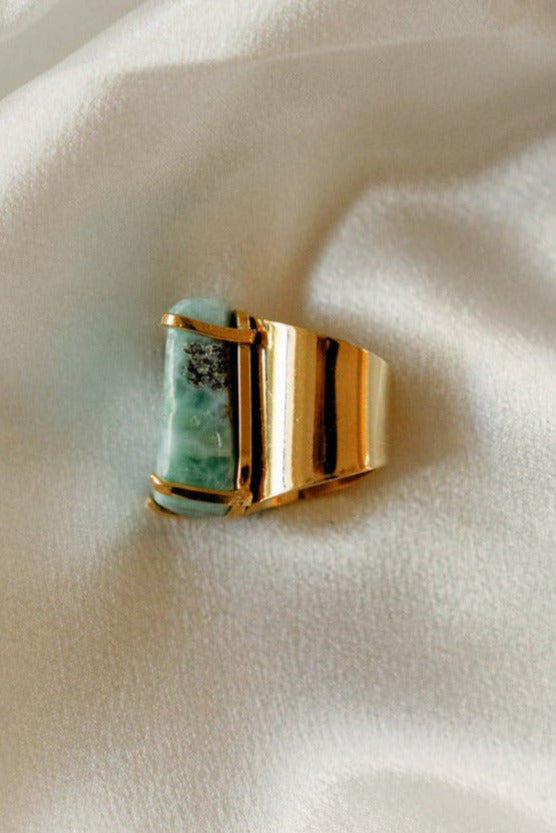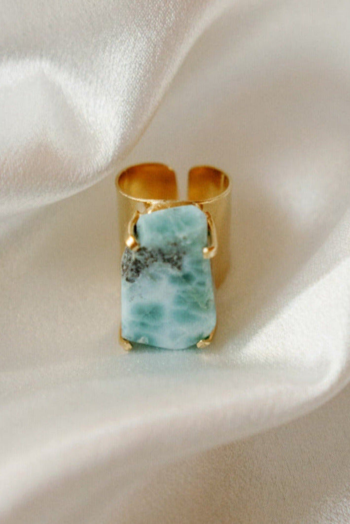 Disclaimer: Please note that each larimar stone is unique in size, shape, and color due to its natural formation, ensuring that every ring is truly special.