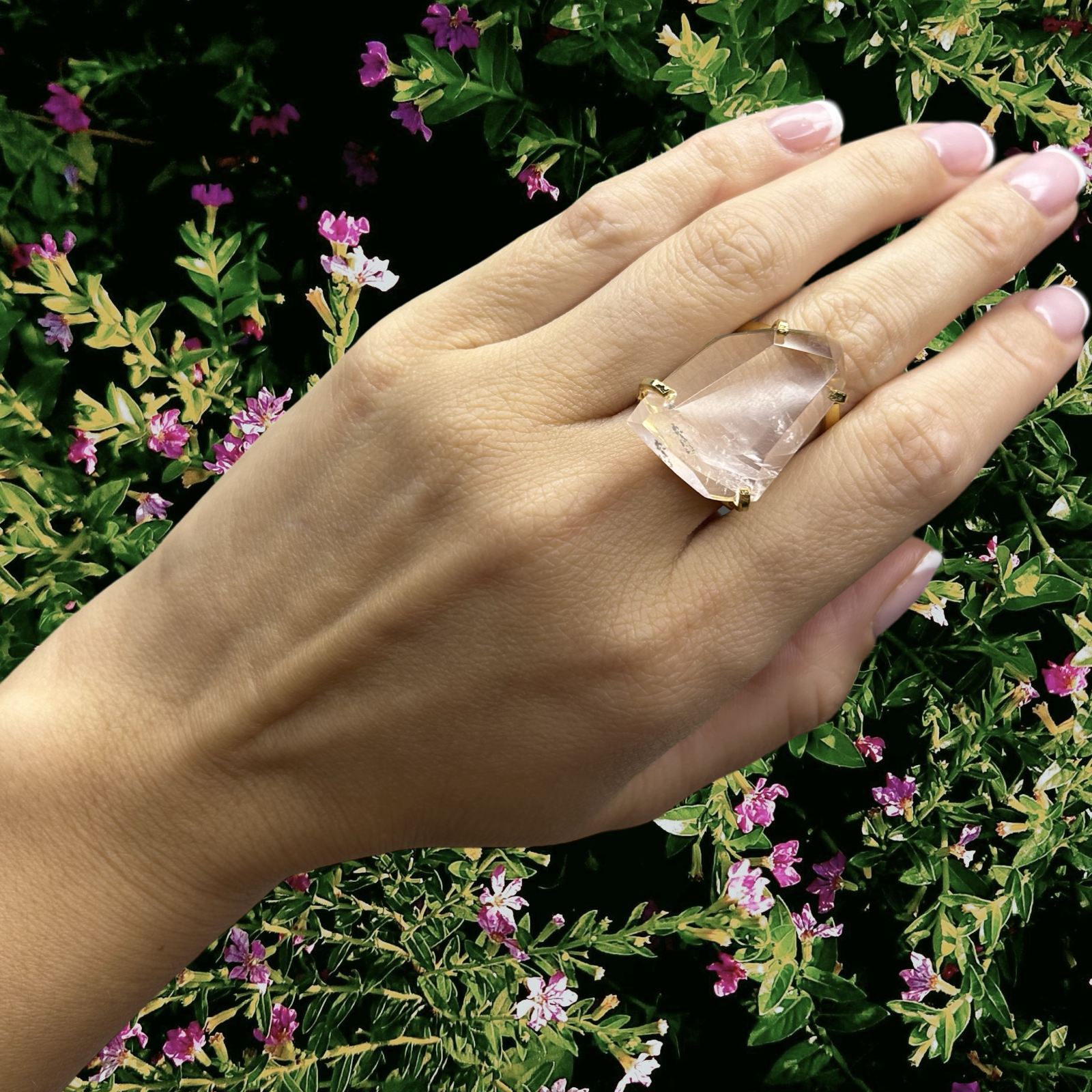 Enhance your style and embrace the healing properties of love with our Elegant Rose Quartz Facet Ring. Handmade in Brazil, this stunning piece is the perfect way to add a touch of elegance and positive energy to your jewelry collection.