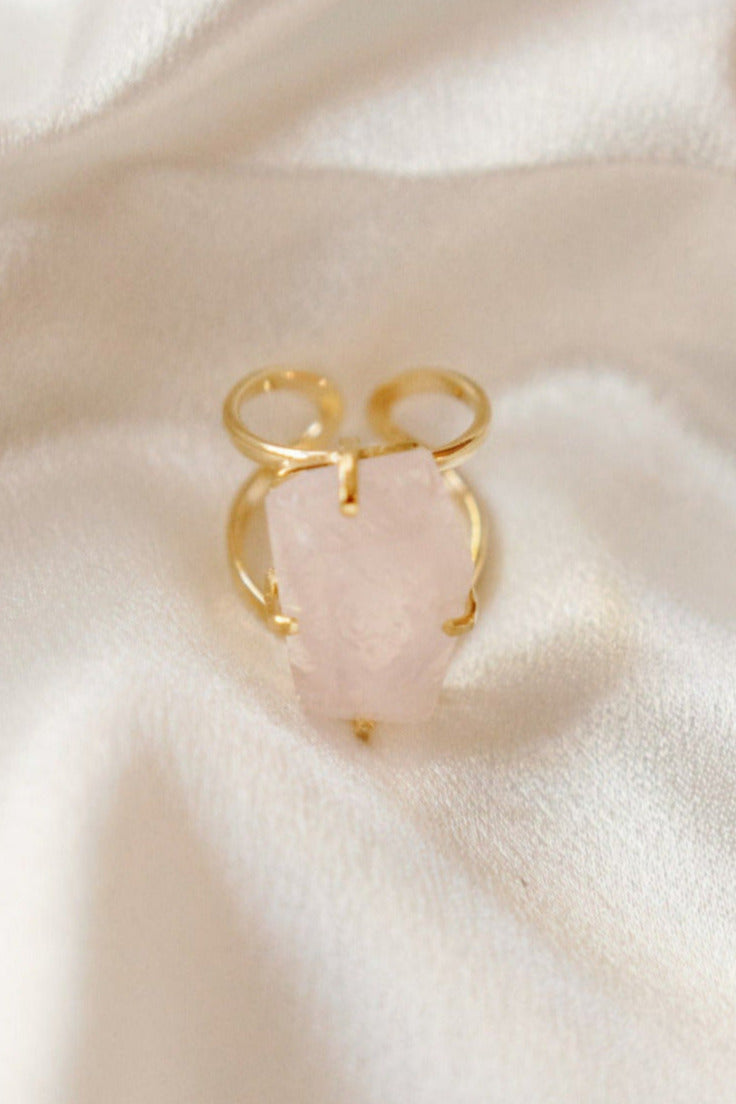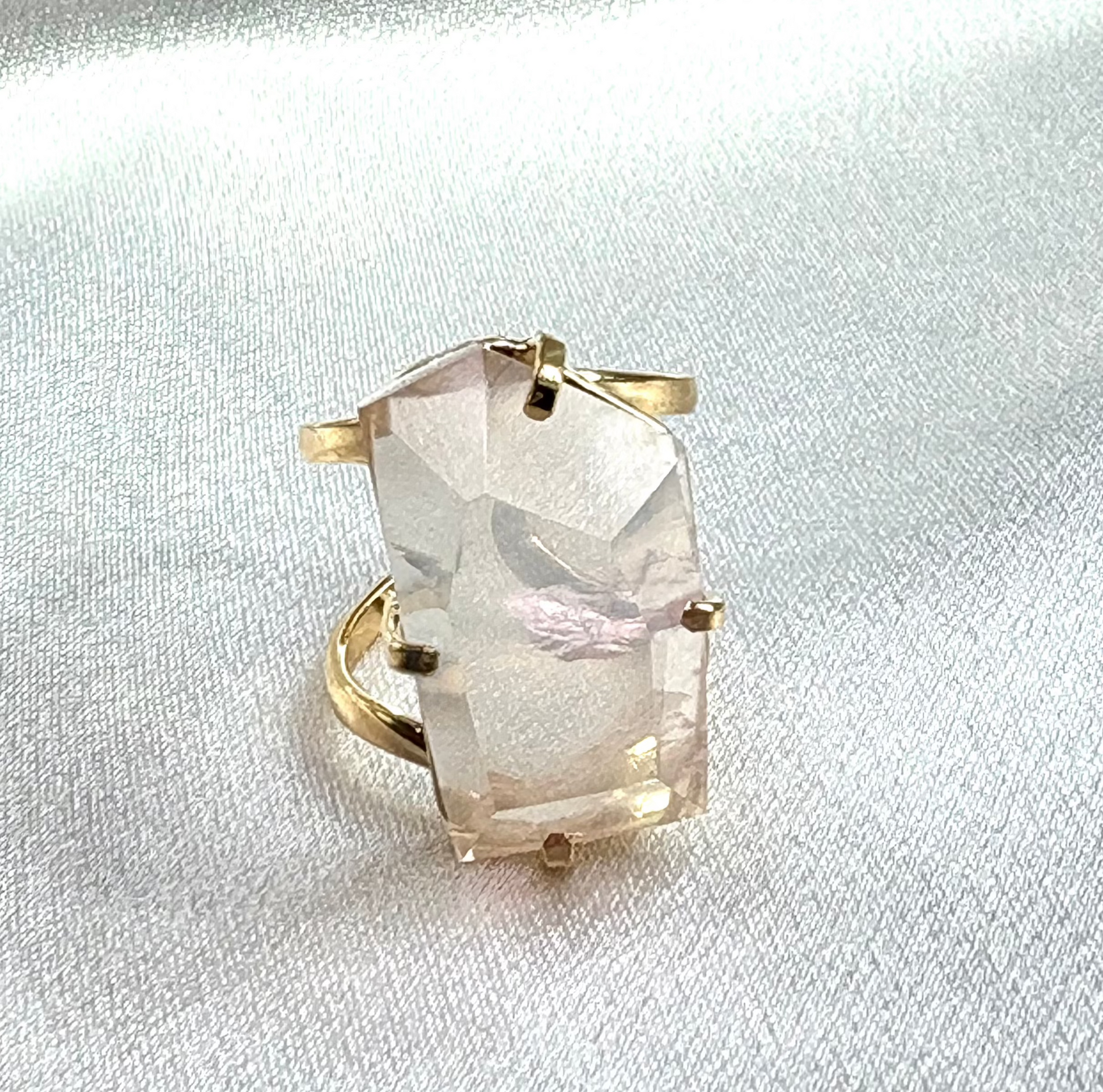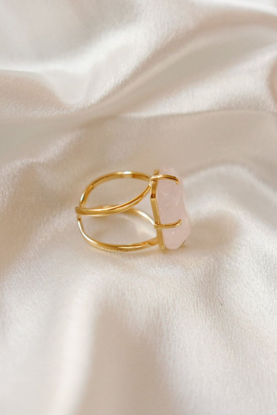 Rose Quartz Faceted Cocktail Ring — Genuine Gemstone, 18K Gold Plated, Handcrafted Statement Jewelry