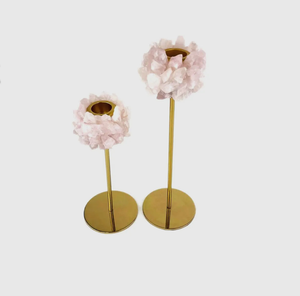 Rose Quartz Taper Candle Holder - 2 Sizes