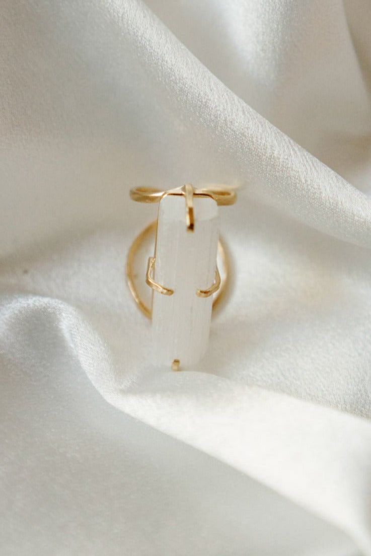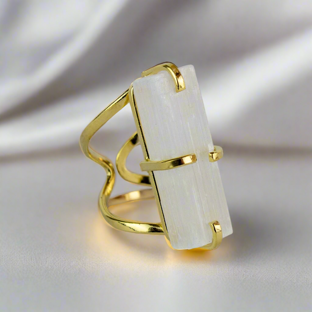 Add this Selenite Statement Ring to your collection and experience the beauty and energy of handcrafted luxury.