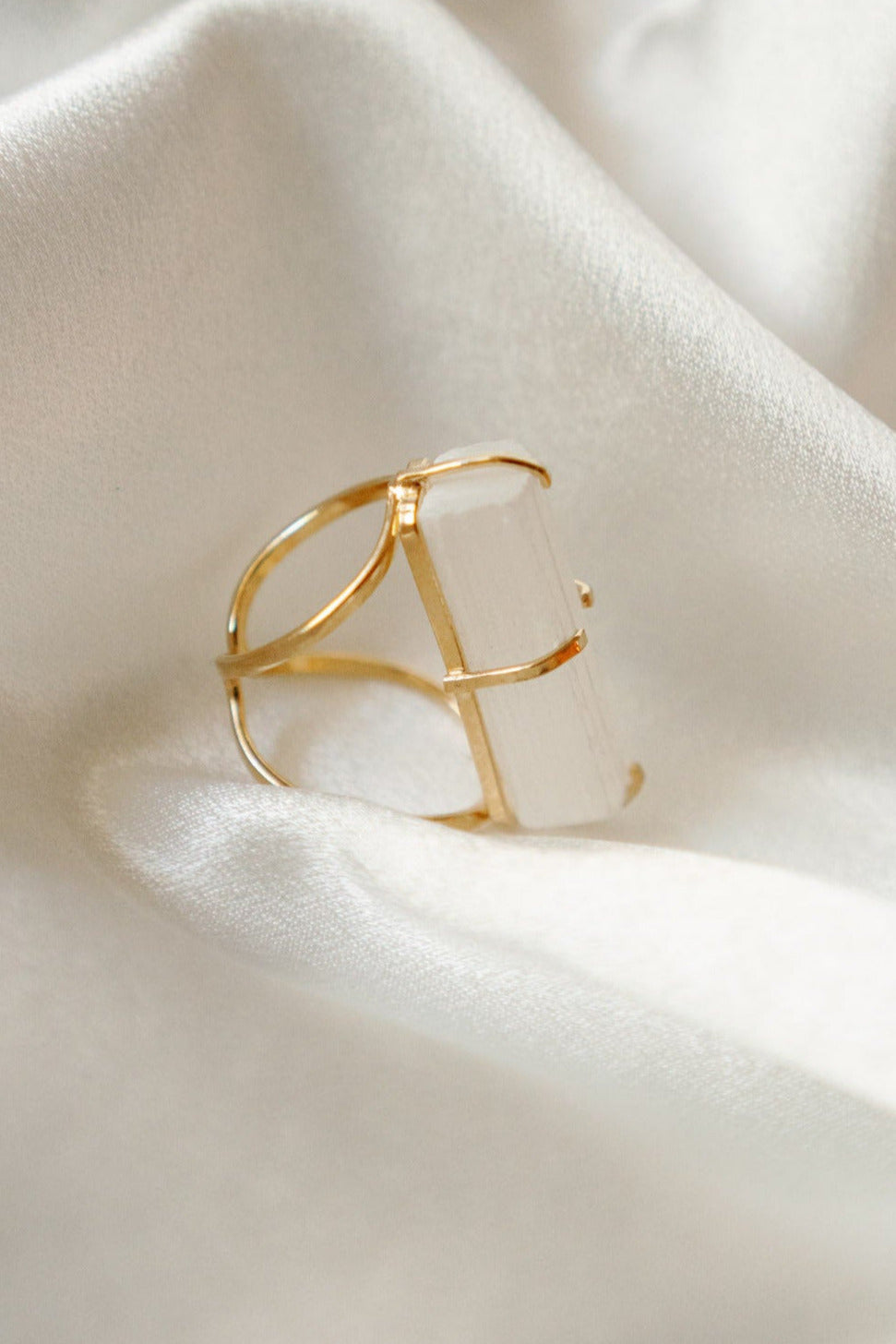 Selenite Statement Ring — 18K Gold Plated Natural Gemstone Cocktail Ring, Hypoallergenic Luxury Jewelry